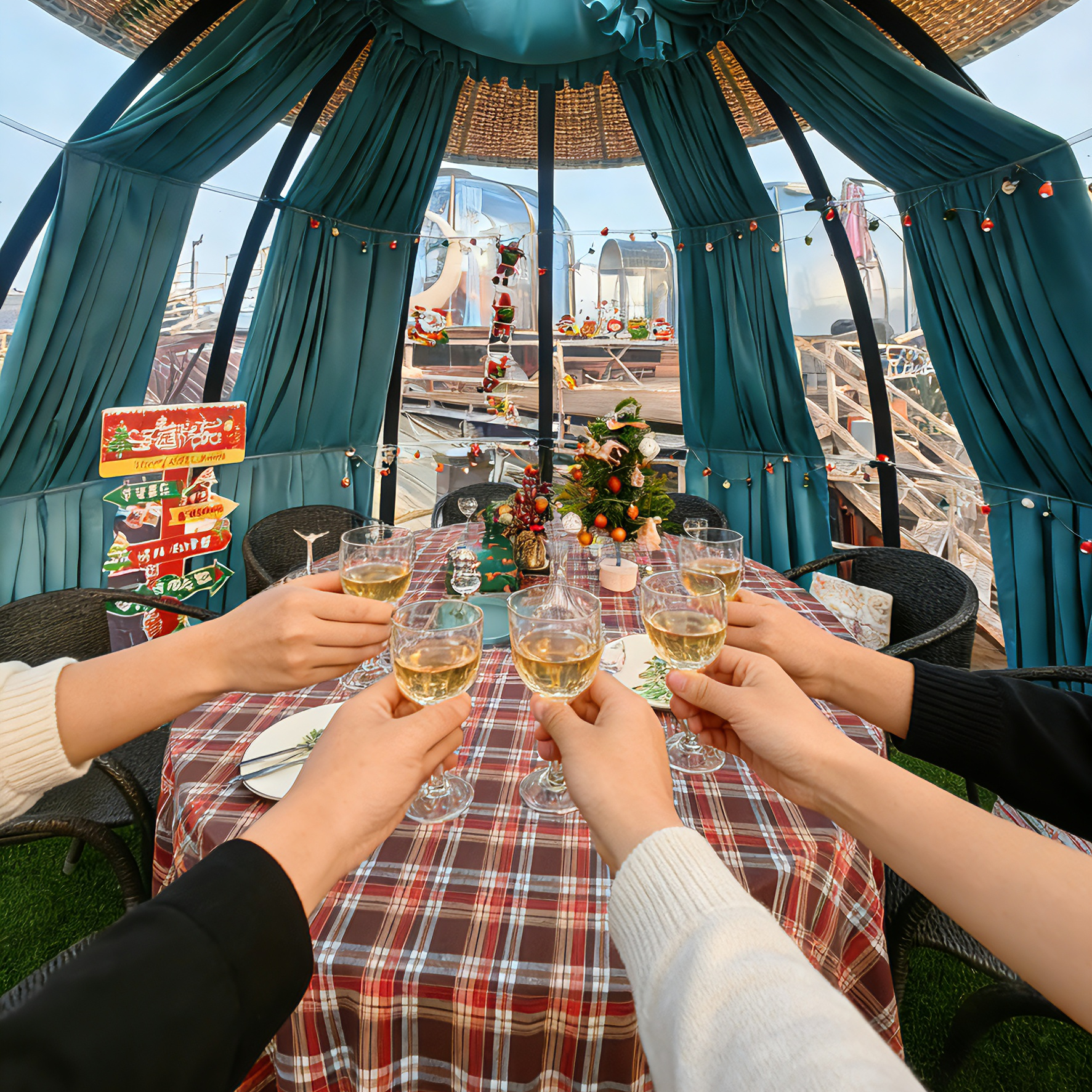 Our dome showroom has transformed into a Christmas wonderland, where creative decorations spark festive joy and let happiness ripple through every corner.